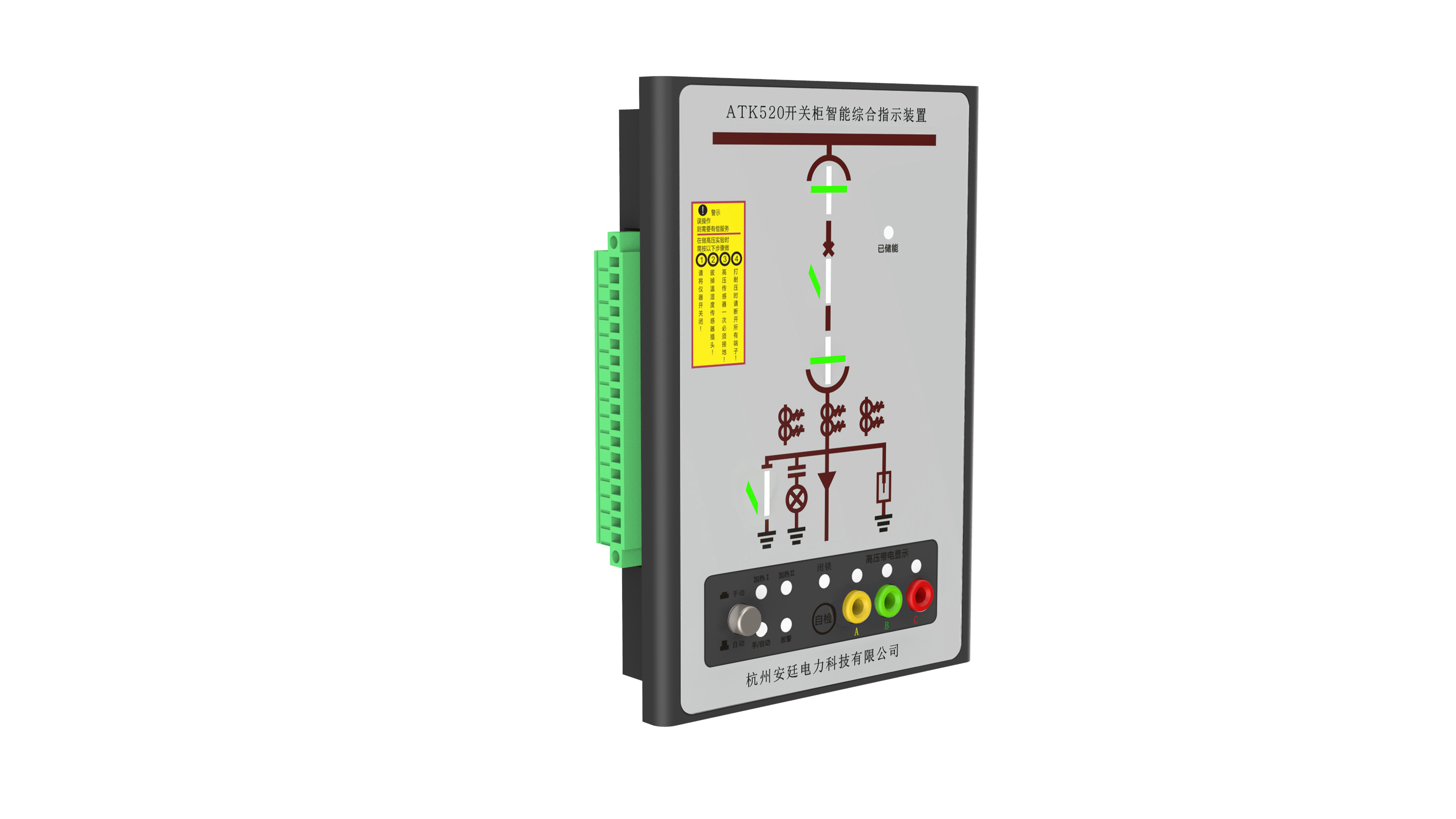 ATK520 型開關柜狀態(tài)指示儀功能強大,使用于3-35KV戶內開關柜,中置柜、手車柜、固定柜、環(huán)網柜等多種開關柜。具有動態(tài)一次模擬圖、高壓帶電顯示、自動加熱除濕、斷路器分合狀態(tài)指示、儲能指示、接地開關狀態(tài)指示、小車位置指示、分合閘回路完好指示,可取代現(xiàn)有的一次回路模擬圖、帶電顯示器、自動加熱除濕控制器等。并且具有 RS485通訊接口,能夠使開關柜進一步,智能化網絡化,數字化。方便廣大用戶使用與操作。
