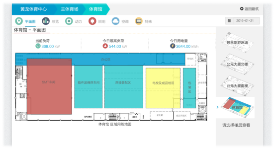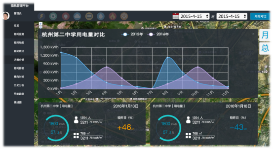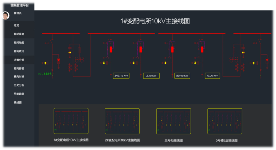 系統(tǒng)支持GIS地圖監(jiān)測功能,以電子地圖中的地圖模式會顯示平臺地理信息界面,合理準確的闡述監(jiān)測區(qū)各個樓宇的地理分布位置,并給出文字圖形加以標注。見界面包含樓宇實景圖、樓宇簡要、樓宇系統(tǒng)功能等。同時,系統(tǒng)為各建筑、樓層、設備、回路提供了詳細的能耗地圖,通過此畫面,操作員可以清楚、詳細地查看各建筑、樓層、分區(qū)等的相關用電數據,方便地進行設備的控制操作,包括全遙測數據、回路狀態(tài)、報警和故障信號的查看、諧波數據分析、遠程控制操作等。