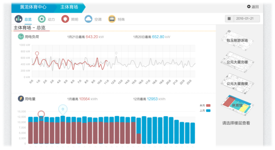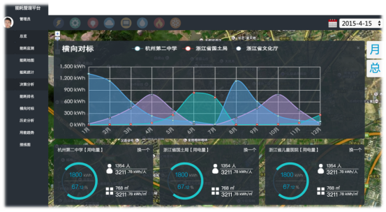對整個監(jiān)控區(qū)域及其各個建筑的能耗情況進行統(tǒng)計分析,通過分析總能耗、分項用電、人均用能、單位面積用能、無效能耗等指標,找出建筑中可能存在用能浪費的環(huán)節(jié);