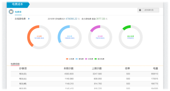 通過對每日峰谷平電量的統(tǒng)計和比較,提供合理使用峰谷平電量的依據,采用錯峰方式,盡可能的使用低谷和平時段的電能來減少電費的開支。